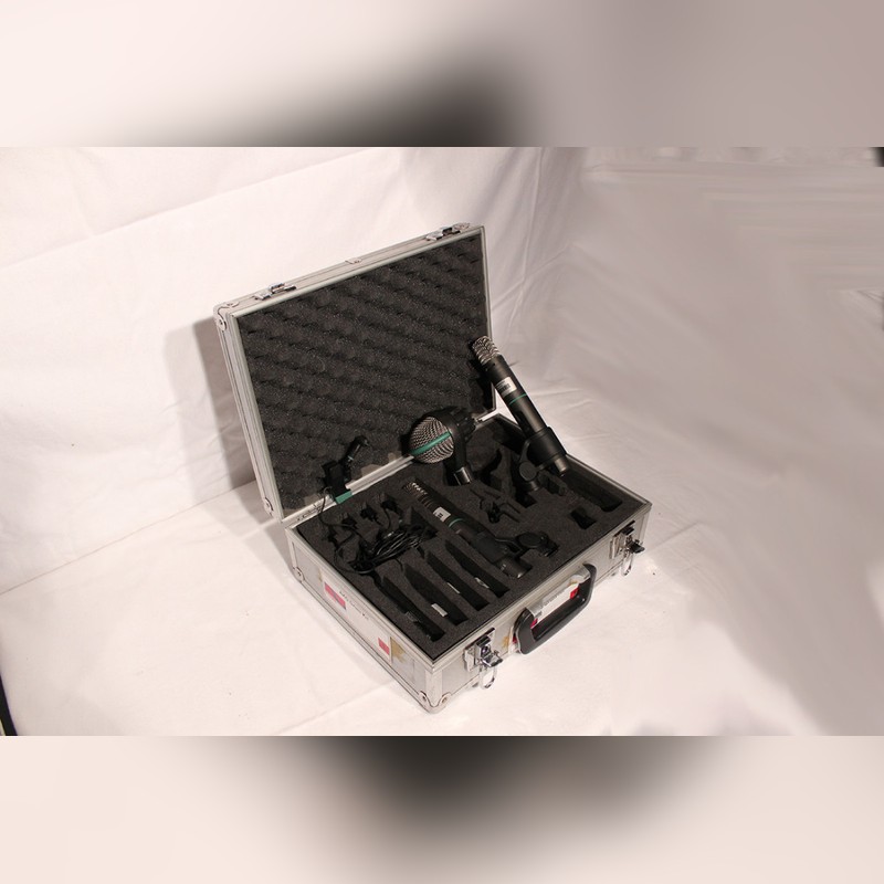 Das AKG Drumkit Schlagzeug Mikrofon Set enthält ein D112 Mikrofon für Bassdrum, zwei C1000 Overheadmikrofone sowie vier C417 Clipmikrofone für Snare und Toms. Es eignet sich für die vollständige Mikrofonierung eines Schlagzeugs im Live- oder Studioeinsatz.